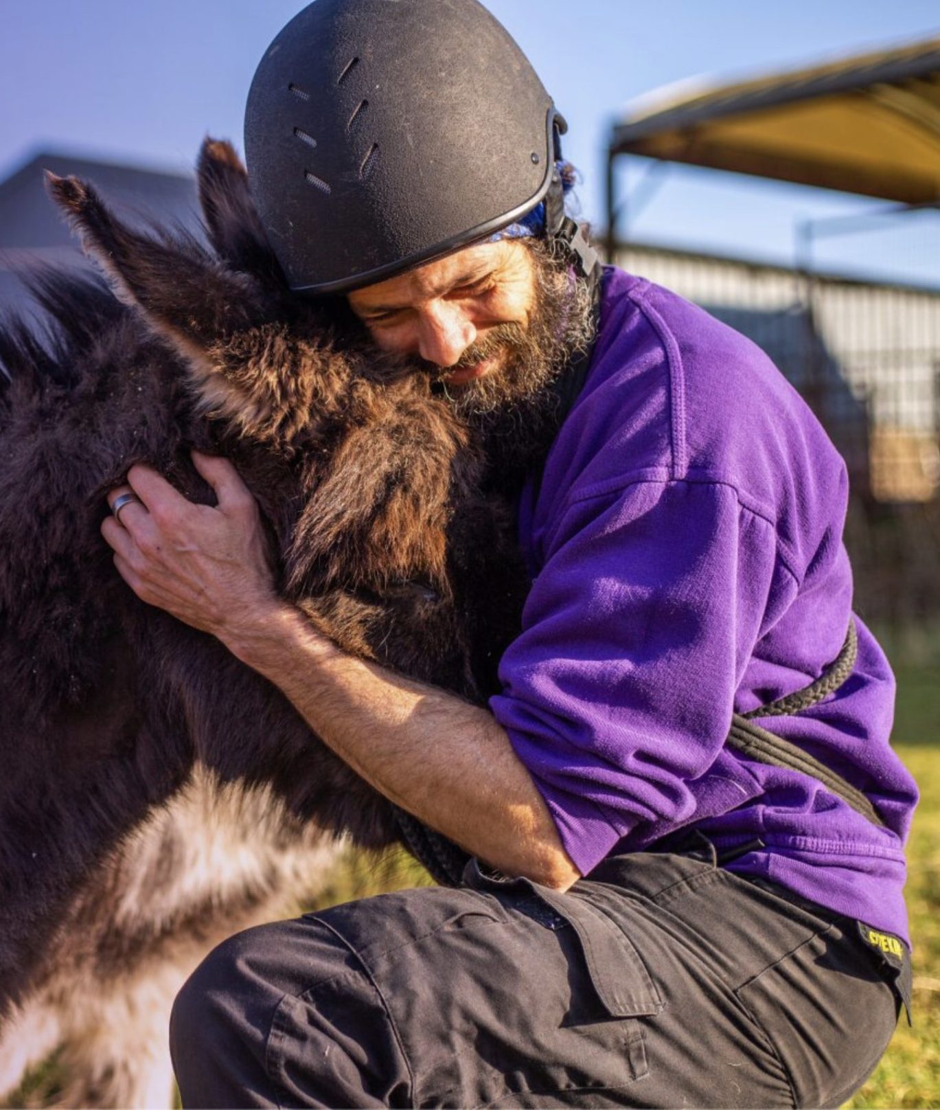Donkey and man hugging, homepage