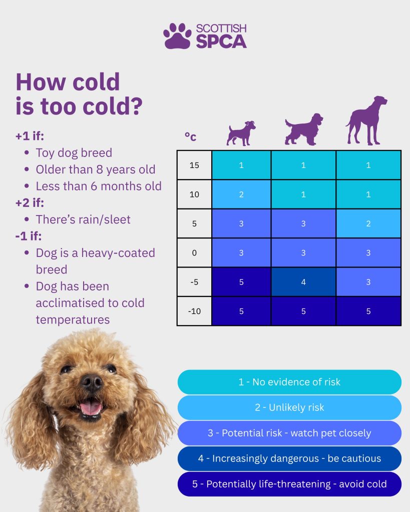 Below -10°C: Dangerous for many dogs, especially without protection