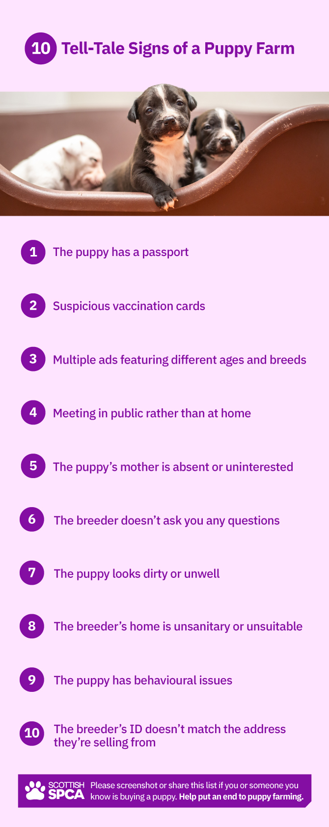 Despite the effort of these organisations, and the initial appearance of the puppies, there are a few signs that you can look out for: