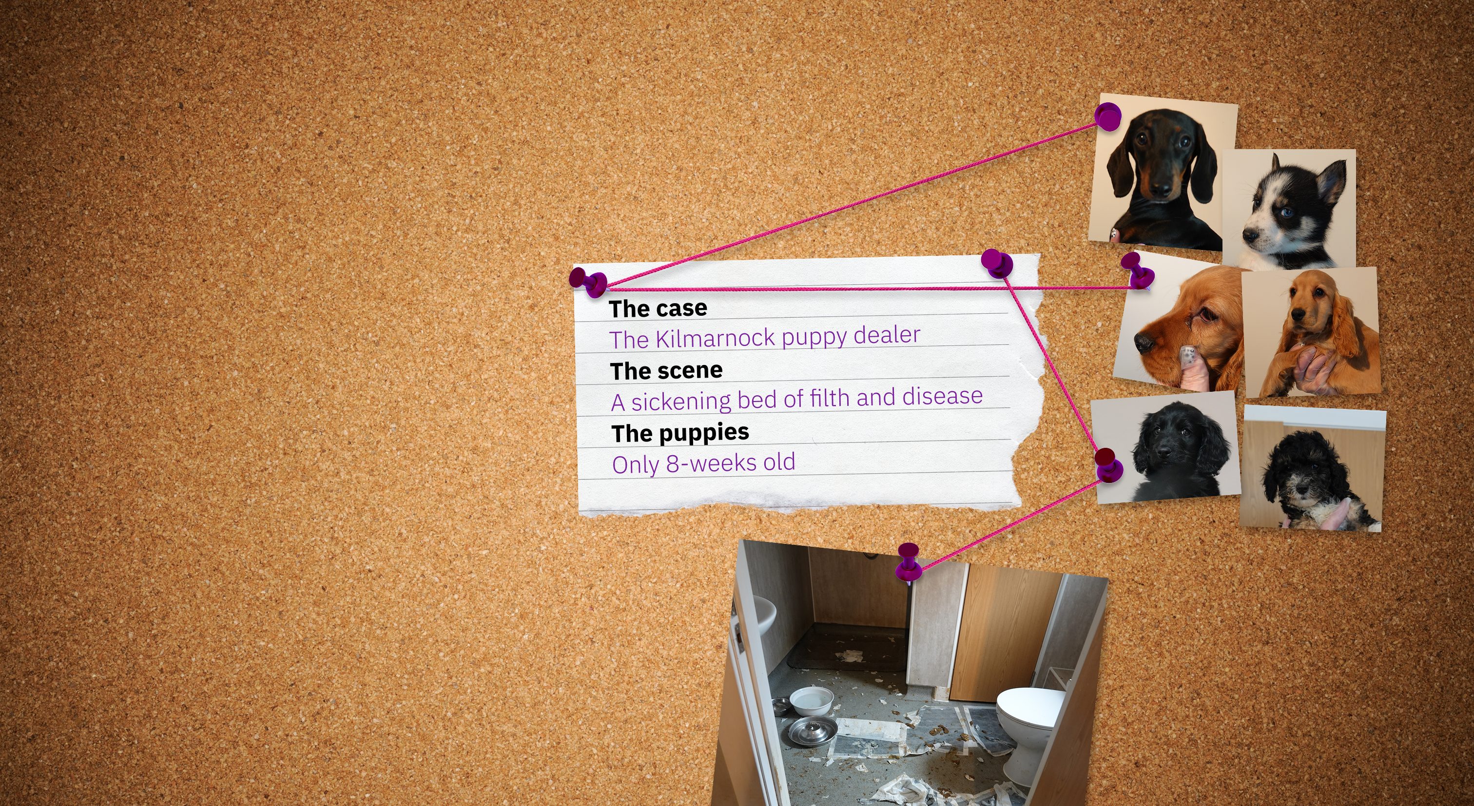 Behind every online advert that offers cute puppies for sale, there could be a story of suffering. And when Scottish SPCA Special Investigations Officers entered a suspected puppy dealer’s home in Kilmarnock, they uncovered this dark reality. They had just walked into a heartbreaking scene of squalor and the site of a greedy crime – where innocent puppies had been neglected for profit.